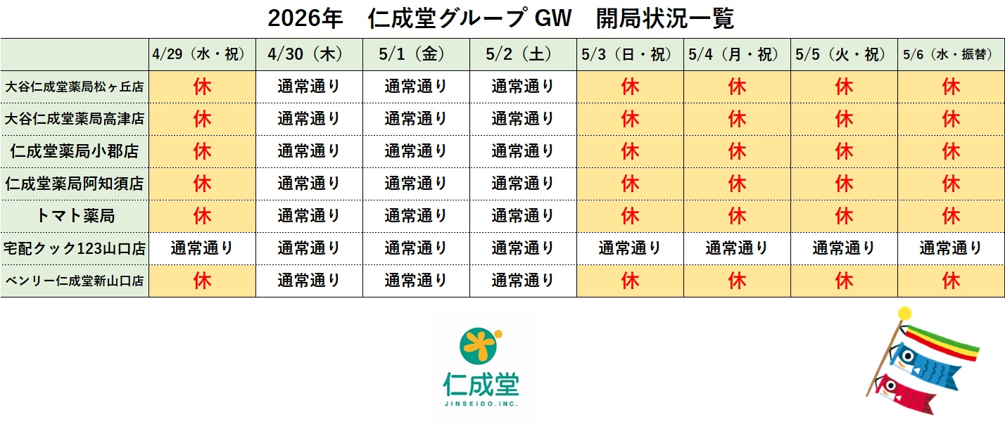 お出かけの方も、ご自宅でゆっくり過ごされる方も、どうぞ楽しいゴールデンウィークをお過ごしくださいませ。